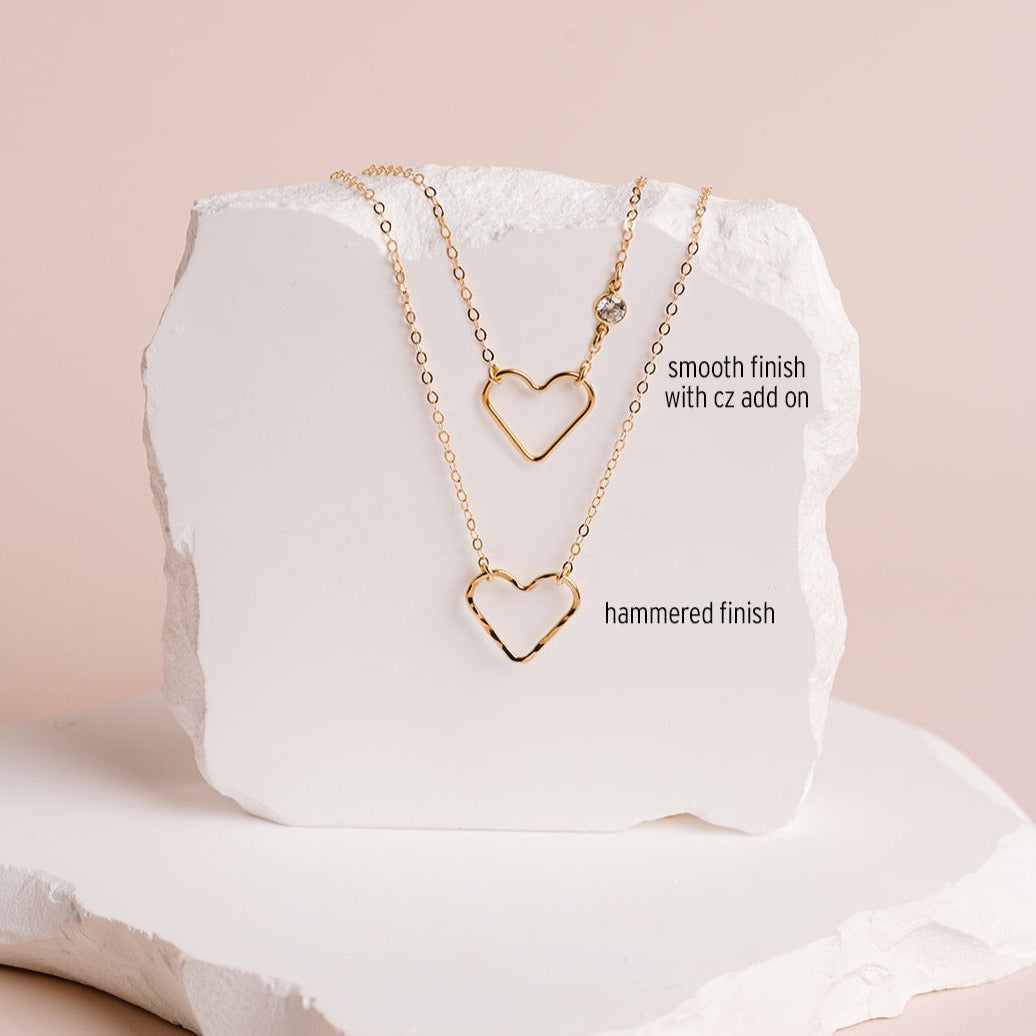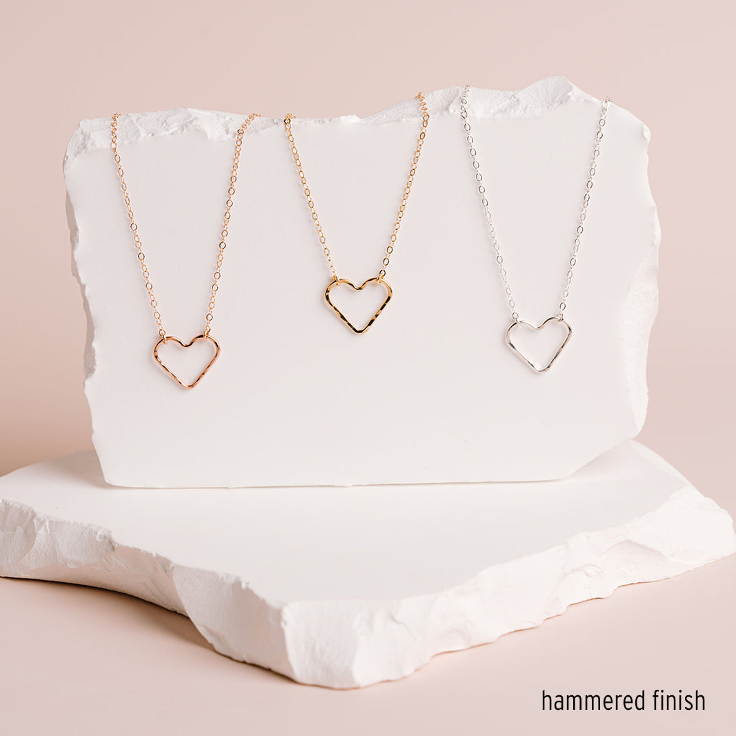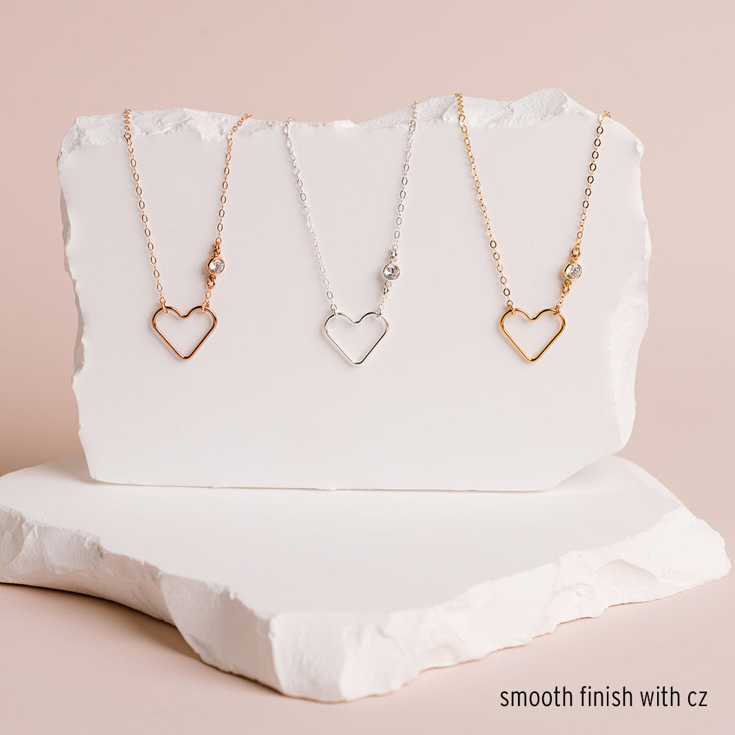 A beautiful heart floats on our sparkly signature chain.