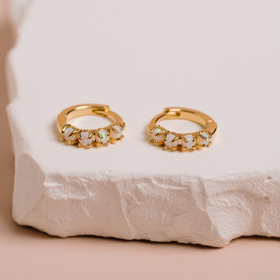 Dainty & beautiful, these opal huggie hoops have amazing iridescence and sparkle .