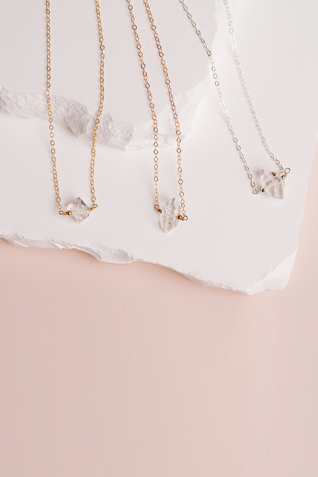 Most of our gemstones are created with a vermeil finish. Vermeil is created with a sterling silver base that is heavily dipped into 14kt gold, leaving a shiny and luxurious finish. You should not use a polishing cloth on any vermeil pieces as it will remove the gold layer and expose the sterling silver base. All of our earrings are gold filled, but gemstone charms are vermeil so they should never be exposed to moisture of any kind.