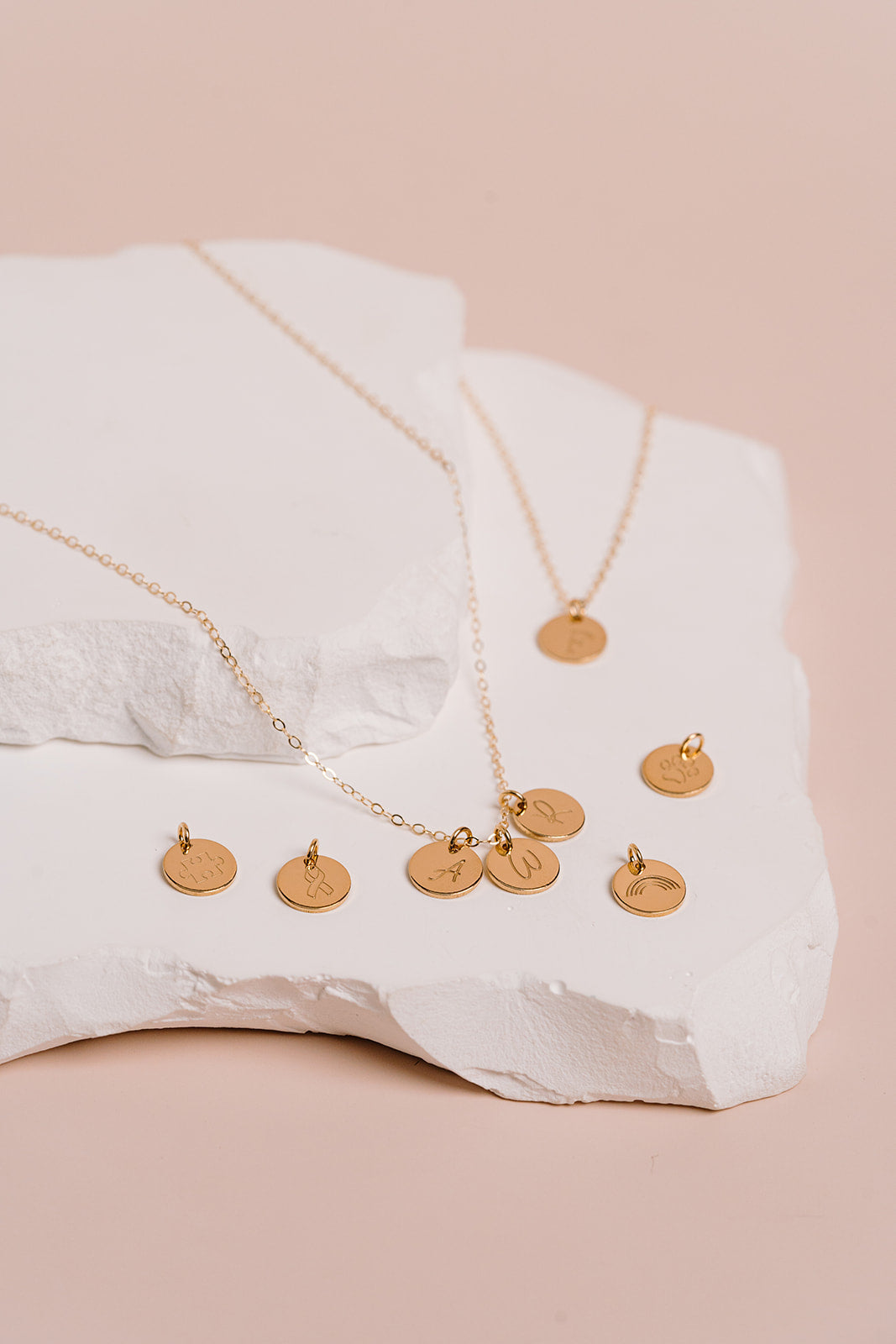 Most of our gemstones are created with a vermeil finish. Vermeil is created with a sterling silver base that is heavily dipped into 14kt gold, leaving a shiny and luxurious finish. You should not use a polishing cloth on any vermeil pieces as it will remove the gold layer and expose the sterling silver base. All of our earrings are gold filled, but gemstone charms are vermeil so they should never be exposed to moisture of any kind.