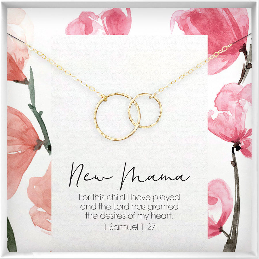 A set of interlocking circles hangs beautifully from our sparkly signature chain.