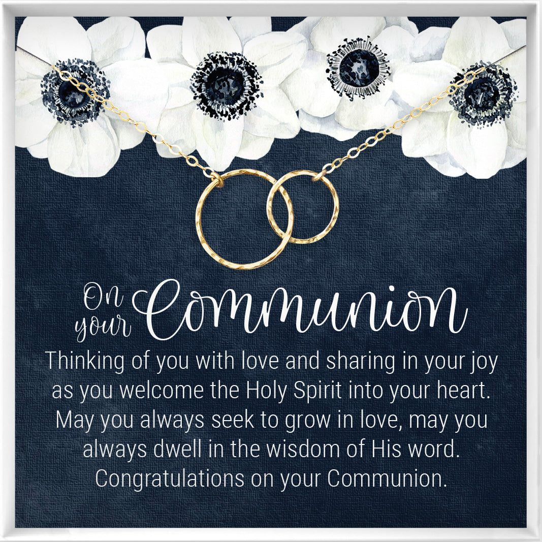 Linked circles pendant measures 1"" wide x .65"" tall.