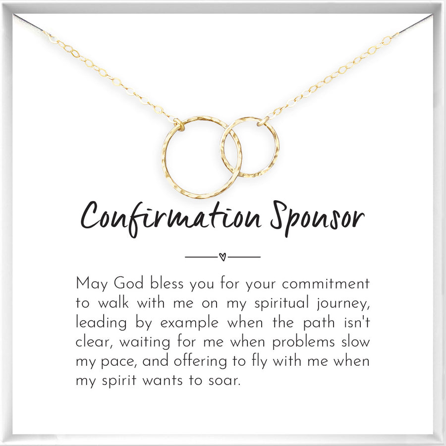 A set of interlocking circles hangs beautifully from our sparkly signature chain.