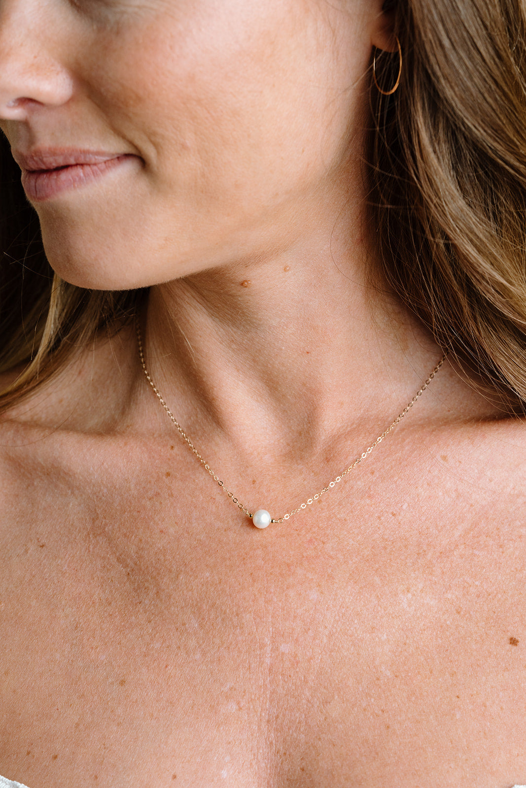A beautiful single freshwater pearl is hand wire wrapped onto our sparkly signature chain.
