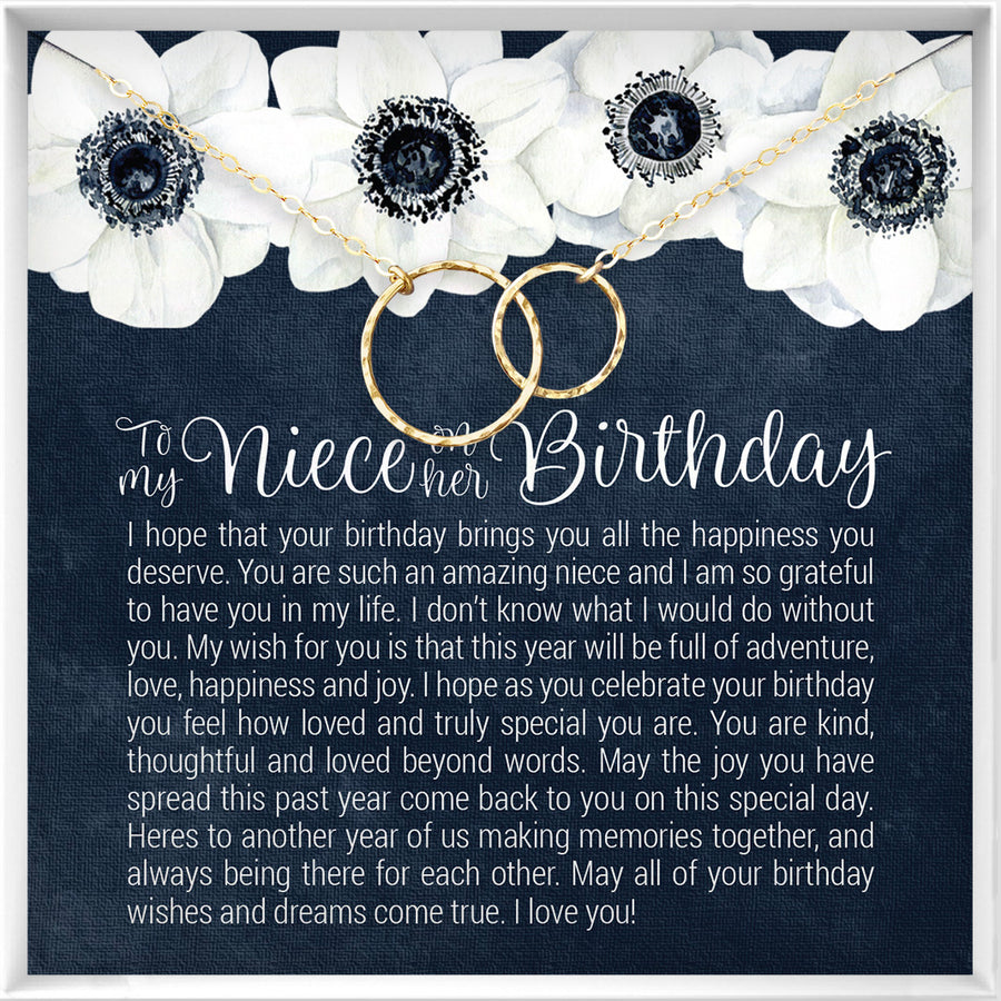 A set of interlocking circles hangs beautifully from our sparkly signature chain.