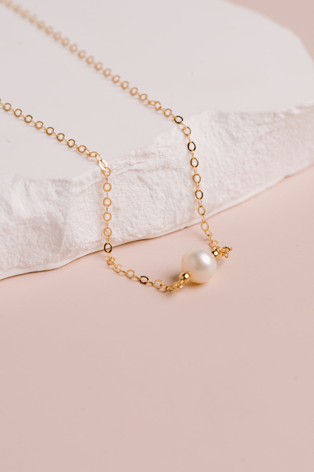 A beautiful single freshwater pearl is hand wire wrapped onto our sparkly signature chain.