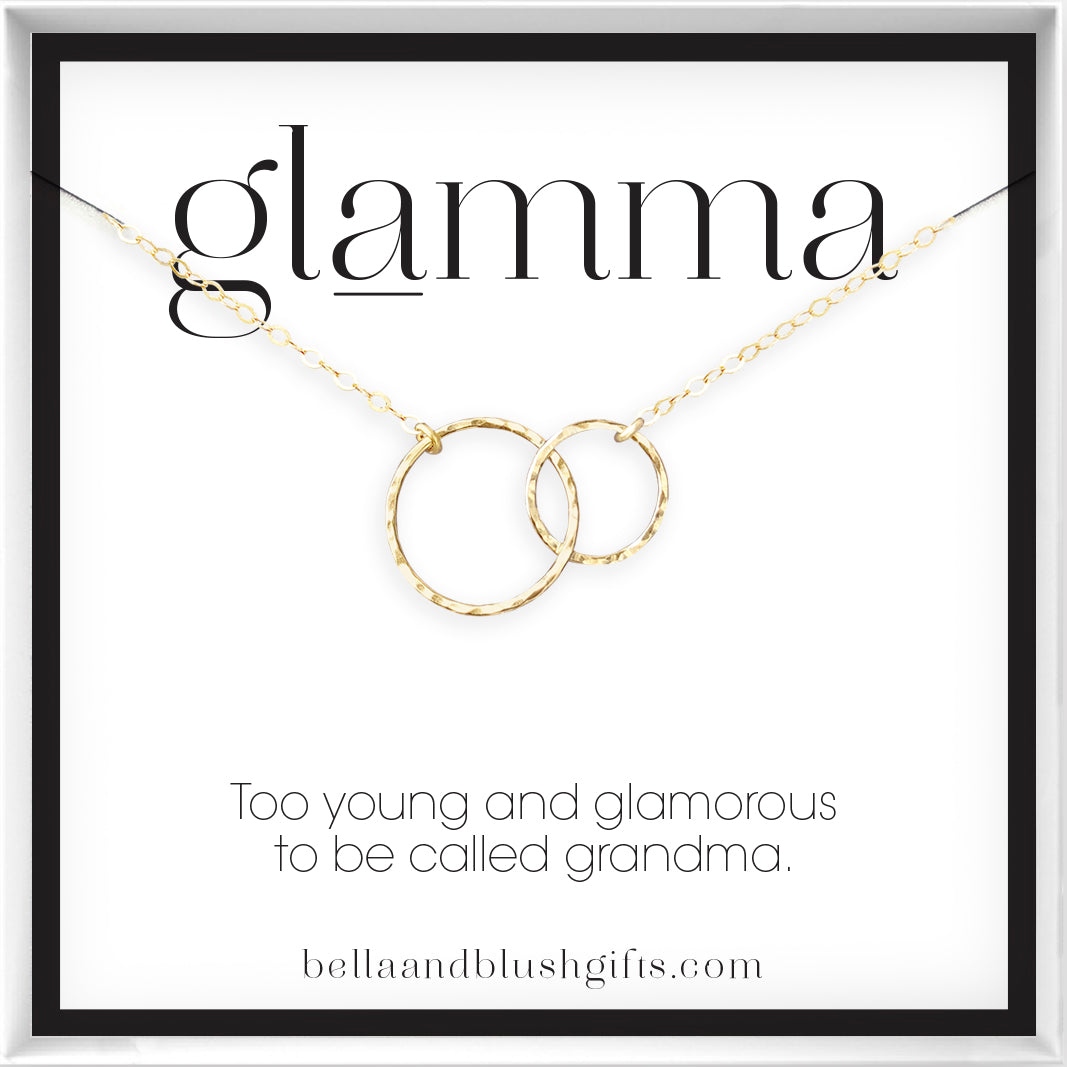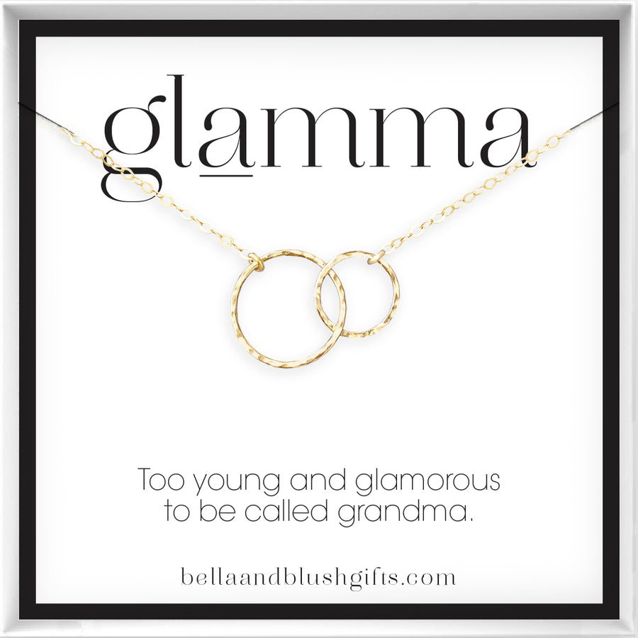 A set of interlocking circles hangs beautifully from our sparkly signature chain.