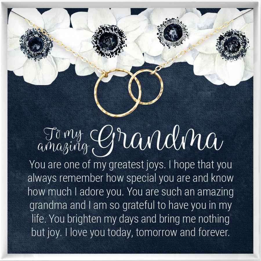 A set of interlocking circles hangs beautifully from our sparkly signature chain.