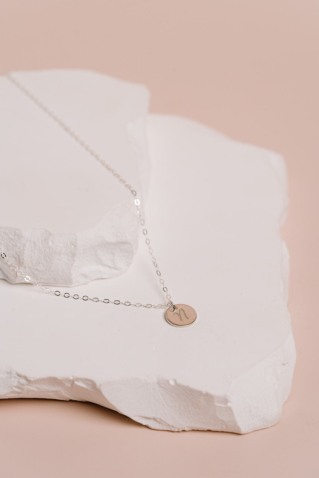 A small disc or tag charm hangs beautifully from our sparkly cable chain.