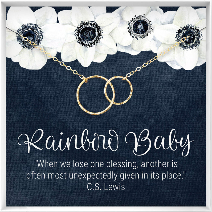 Hammered crescent bars representing an upside down rainbow hangs beautifully from our sparkly signature chain.