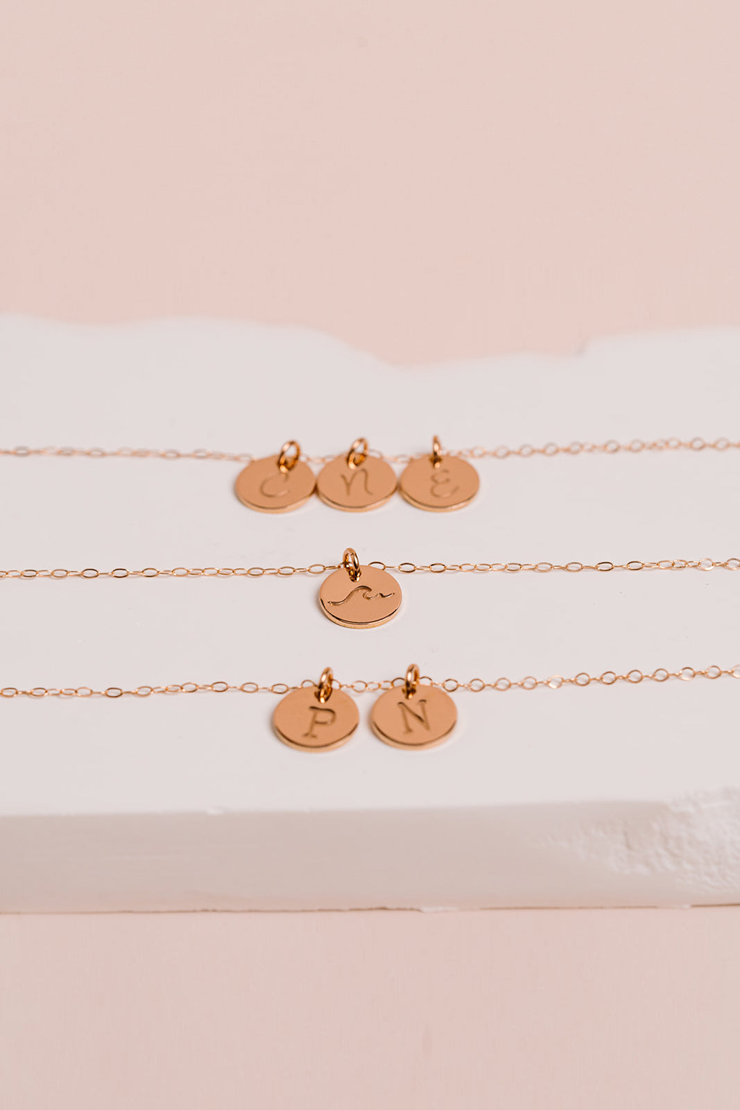 A small disc or tag charm hangs beautifully from our sparkly cable chain.