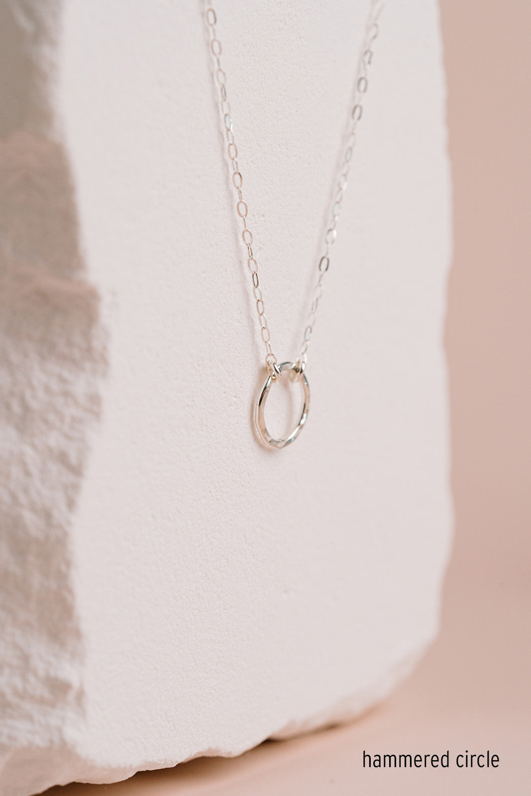 A beautiful single open circle floats on our sparkly signature chain.