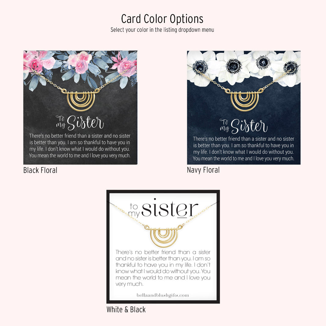 Hammered crescent bars representing an upside down rainbow hangs beautifully from our sparkly signature chain.