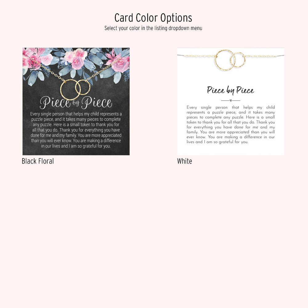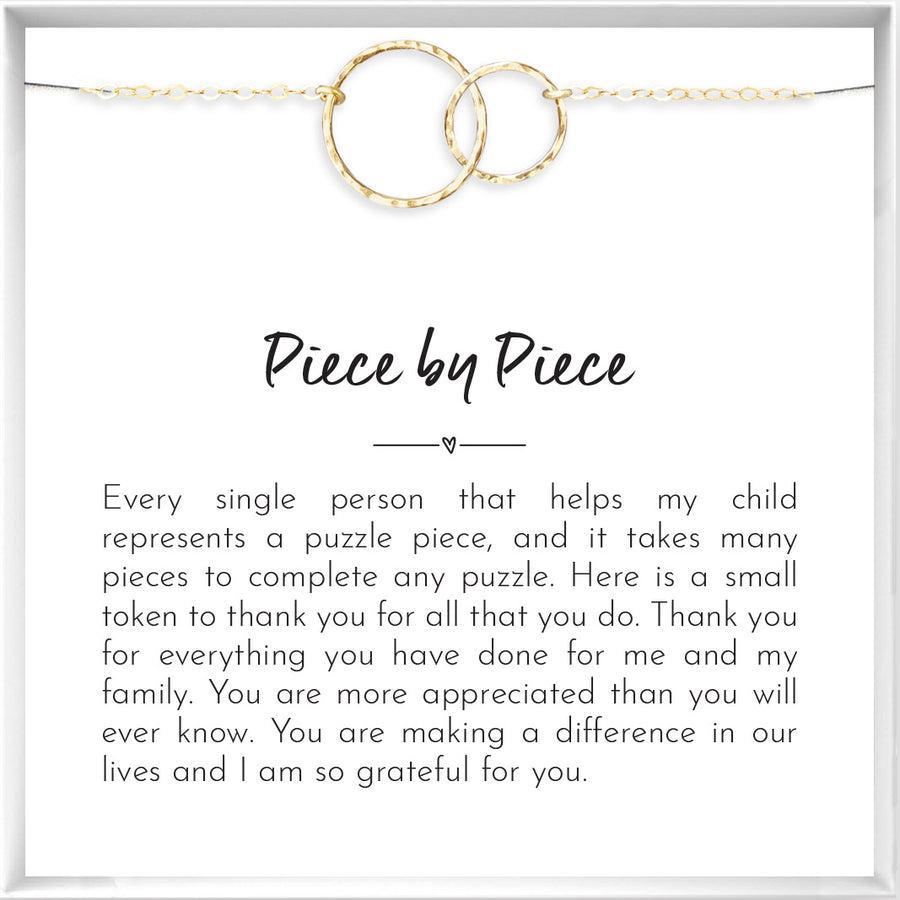 The development and growth of your special needs child depend on the efforts of teachers, mentors, and therapists—whether it’s in academics, arts, or sports. It’s their individual efforts that help piece together the different pieces of the puzzle. This piece-by-piece necklace recognizes their contributions to making your child complete.