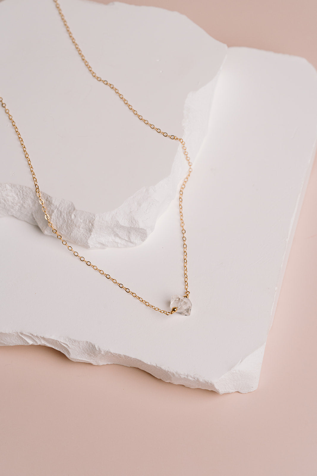 Most of our gemstones are created with a vermeil finish. Vermeil is created with a sterling silver base that is heavily dipped into 14kt gold, leaving a shiny and luxurious finish. You should not use a polishing cloth on any vermeil pieces as it will remove the gold layer and expose the sterling silver base. All of our earrings are gold filled, but gemstone charms are vermeil so they should never be exposed to moisture of any kind.