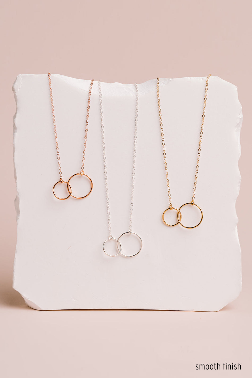 Linked circles pendant measures 1"" wide x .65"" tall.